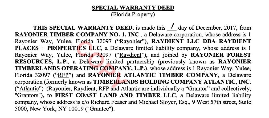 That’s when, property records show, a company called “First Coast Land and Timber LLC” paid $14.6 million to buy roughly 4,000 acres of timberland in St. Johns County from Rayonier Inc., the publicly traded lumber giant.