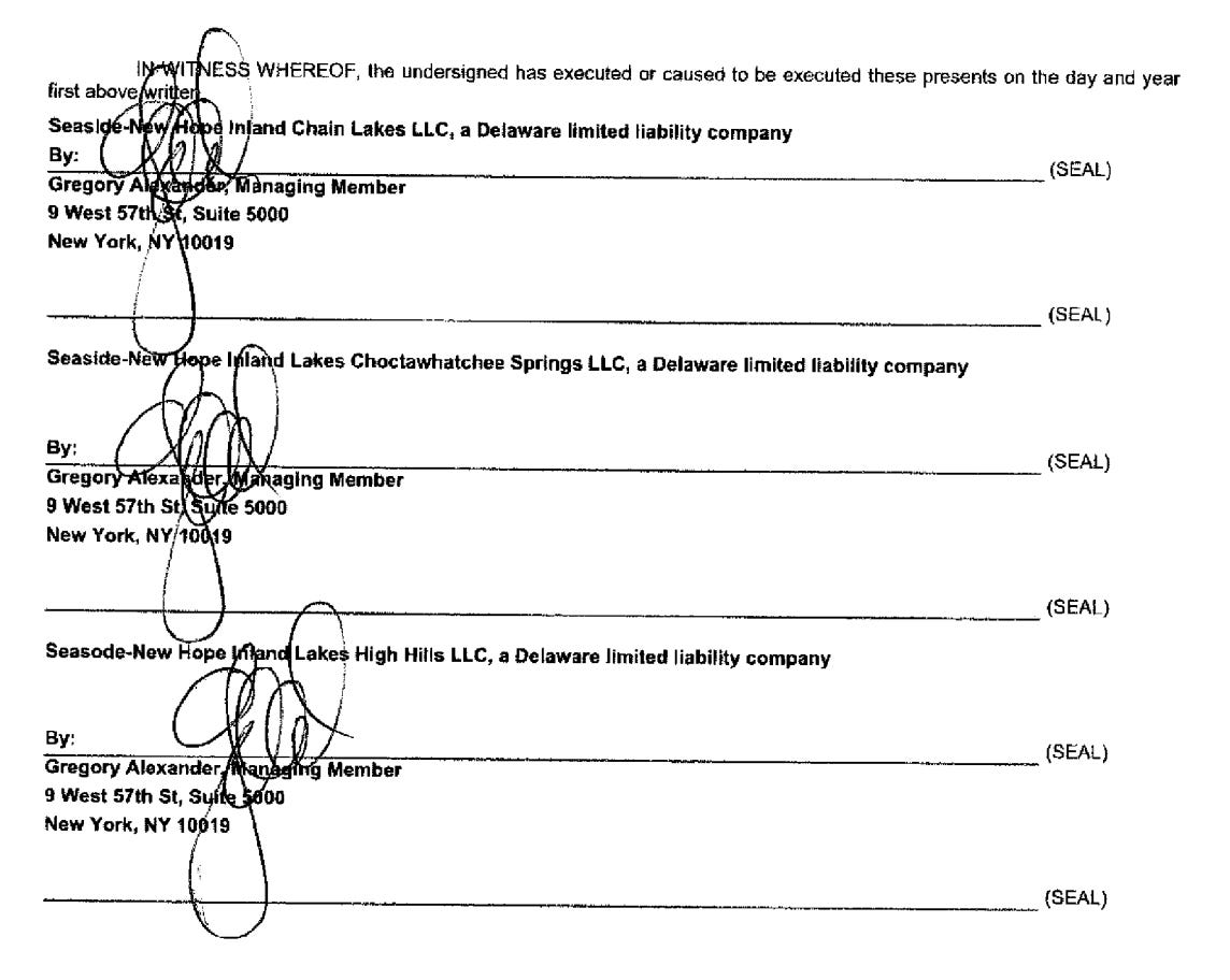 Similarly, mortgage documents for Seaside-New Hope Inland Chain Lakes LLC and the other related land-owning entities in Washington County all list Gregory Alexander as their managing member — with the same Ruane Cunniff address in New York.
