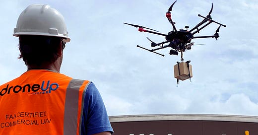 Walmart Inc., the world’s largest retailer and a $600 billion-a-year behemoth, is not only a customer of the company — it is also an investor. A senior Walmart executive sits on DroneUp’s board of directors.