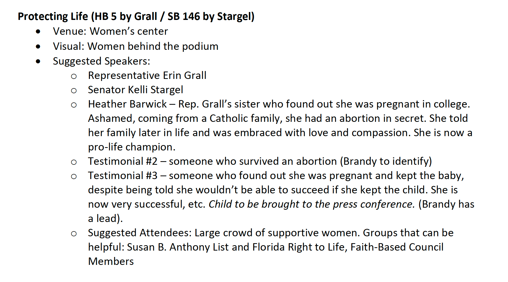 The “Visual,” they wrote, should be“Women behind the podium.” And the “suggested attendees” should include a “Large crowd of supportive women.”