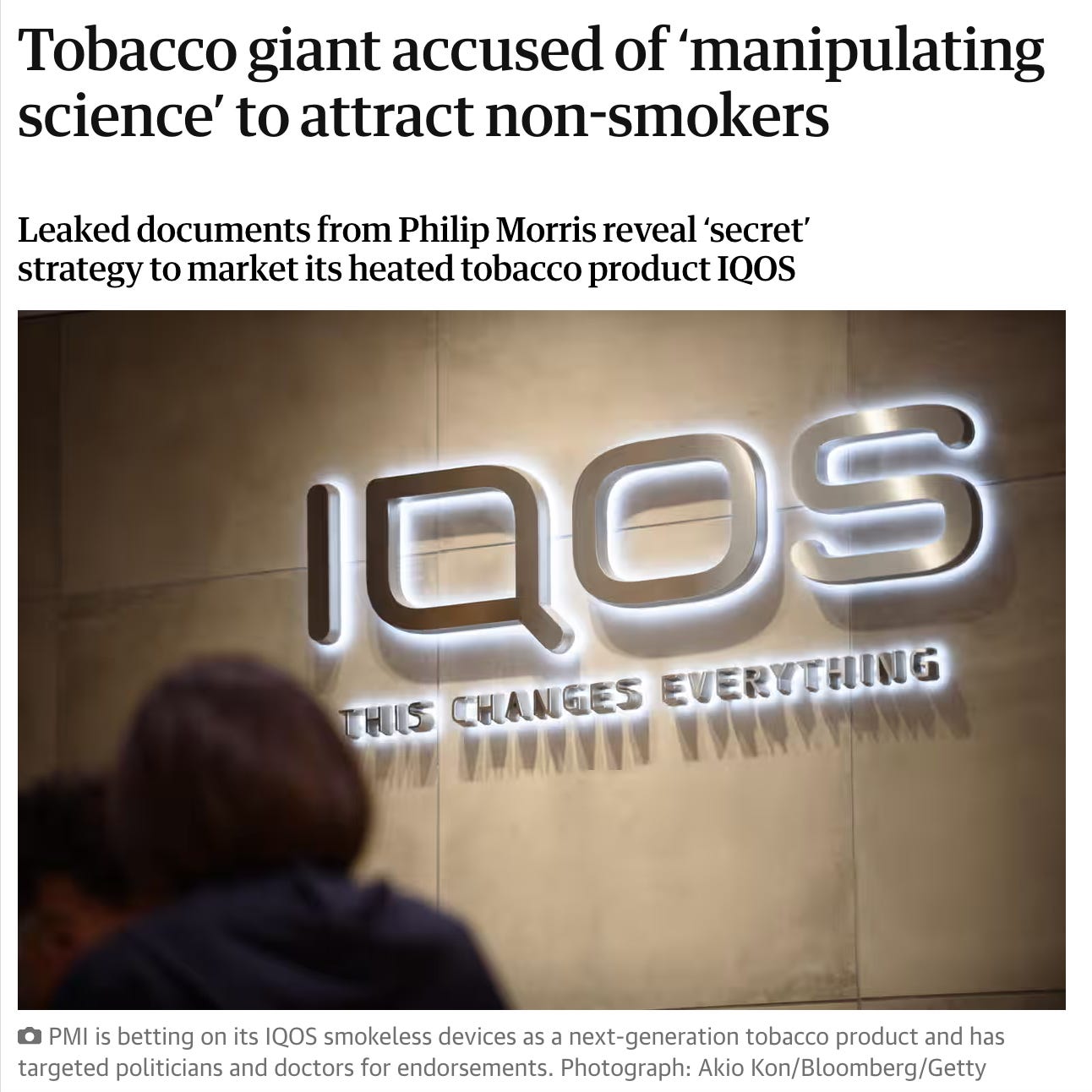 The products have also been aggressively marketed at young people rather than solely at existing smokers. Philip Morris had to suspend a social media campaign for IQOS after Reuters exposed its use of young ‘influencers.’