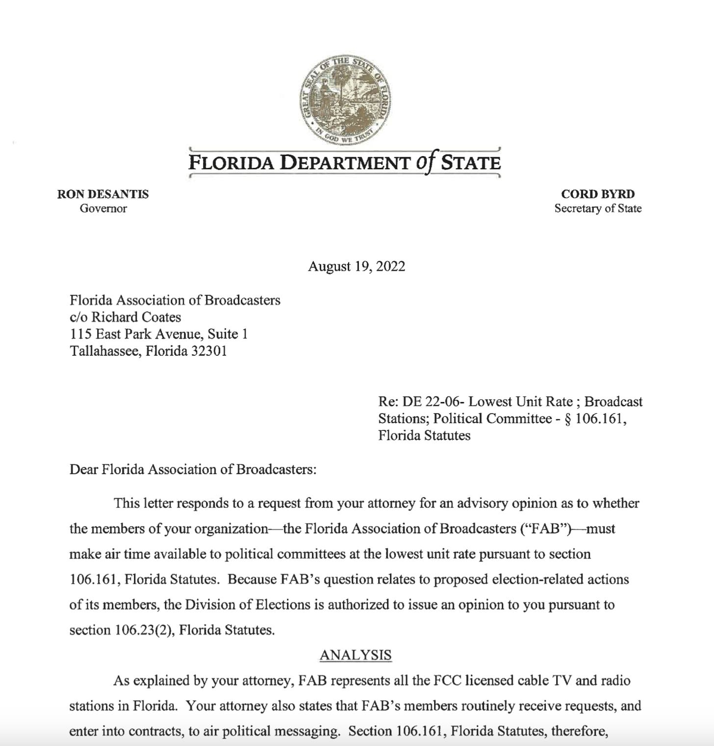 A current Florida broadcast executive told Nate Monroe, the statewide columnist for USA Today’s Florida newspapers, that the DeSantis administration appears to be using that discount program. (Nate and I shared reporting on this story.)