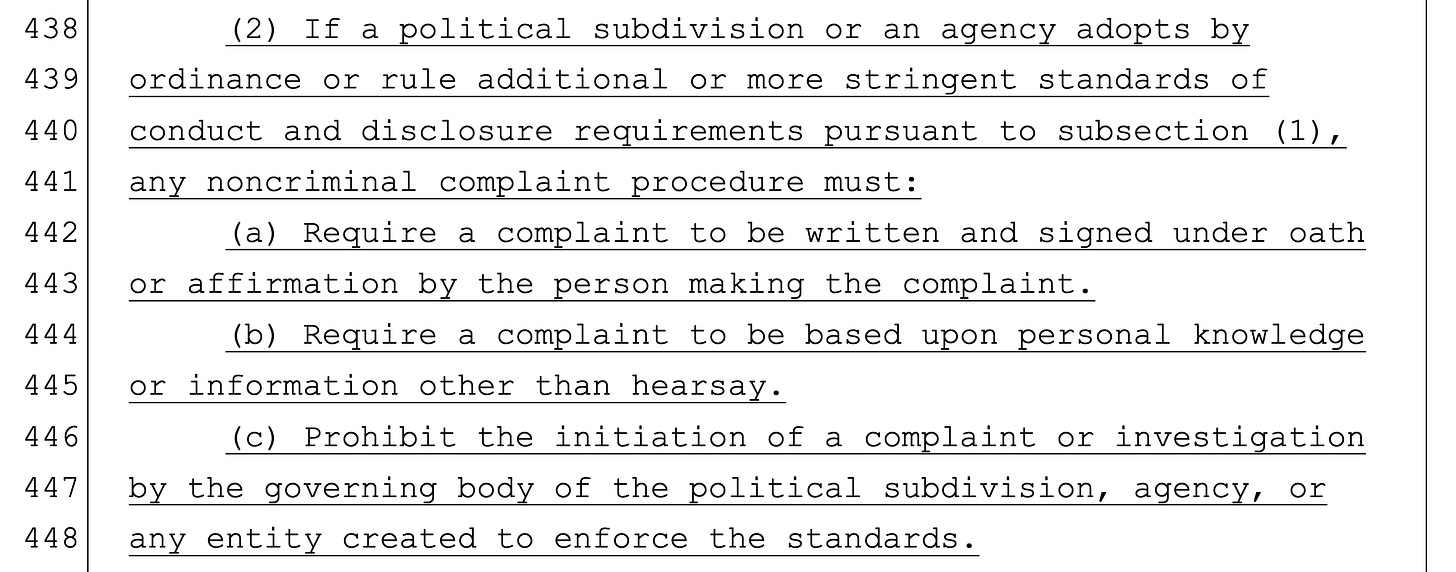 It’s not just a bunch of outside government watchdog groups worried about this, either. The Ethics Commission itself says that prohibiting complaints based on hearsay would be a big change.
