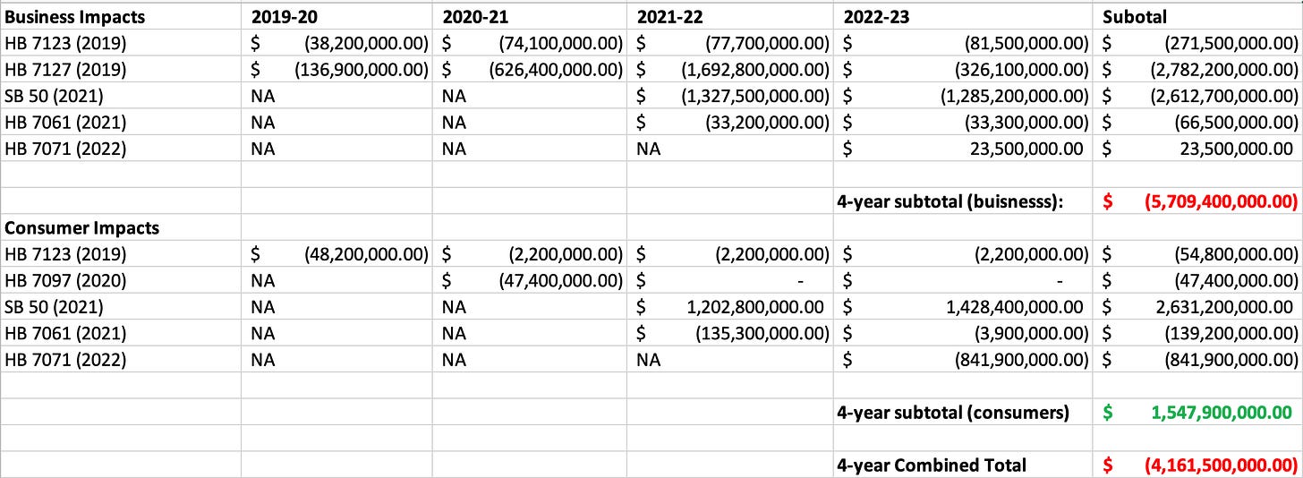 Correction: An earlier version of of this story misstated the tax savings from HB 7127, the governor’s 2021 corporate tax cut. Those savings totaled approximately $2.8 billion (not $2.7 billion). The story and graphics have been updated to reflect the change.