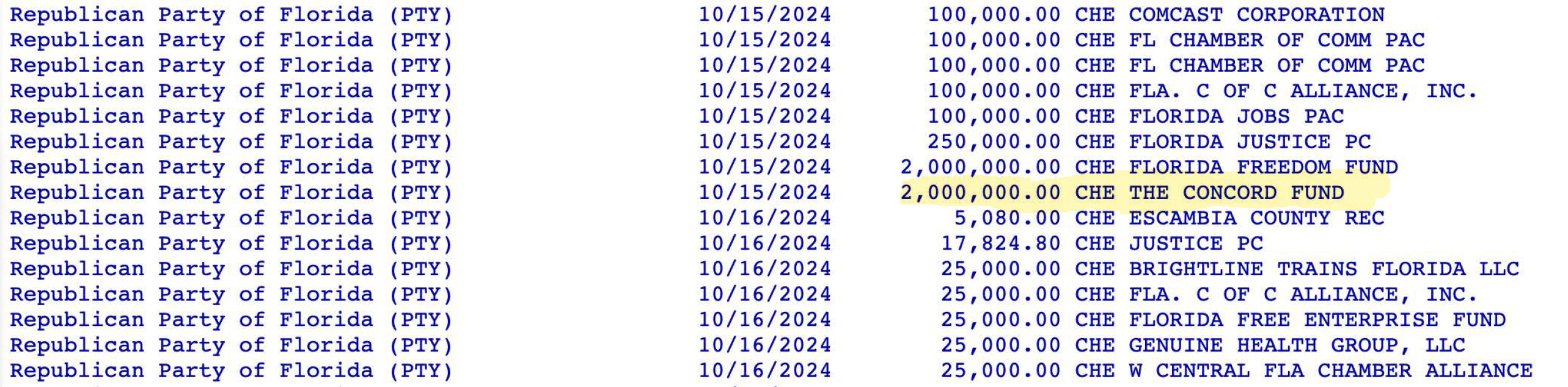 Because the $2 million was routed through the state GOP, there’s no way to say for sure that the donation was specifically for the campaign to keep abortion banned in Florida. The Republican Party was simultaneously funding ads opposing another measure on the ballot: Amendment 3, which would have legalized marijuana in Florida.