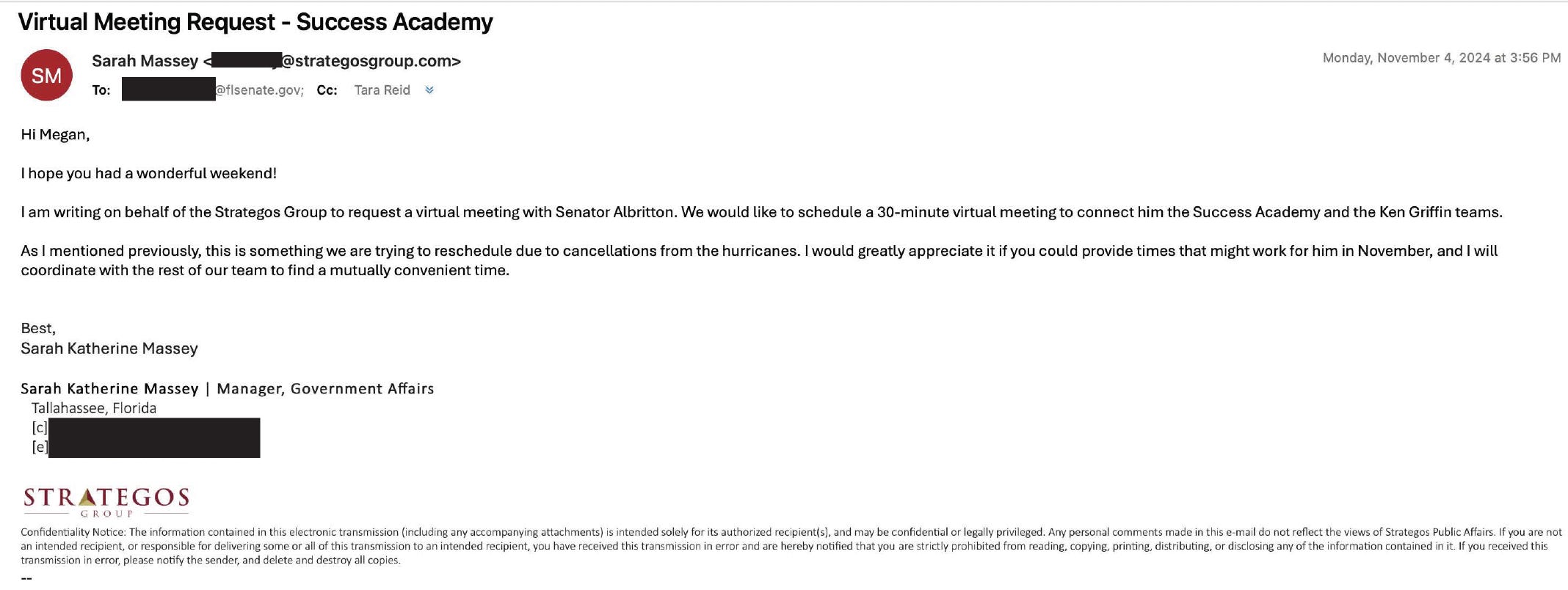 The lobbying blitz may not be over. The records also show that Success Academy wants an enormous infusion of taxpayer money — beyond the existing subsidies Florida already offers through the Schools of Hope program.