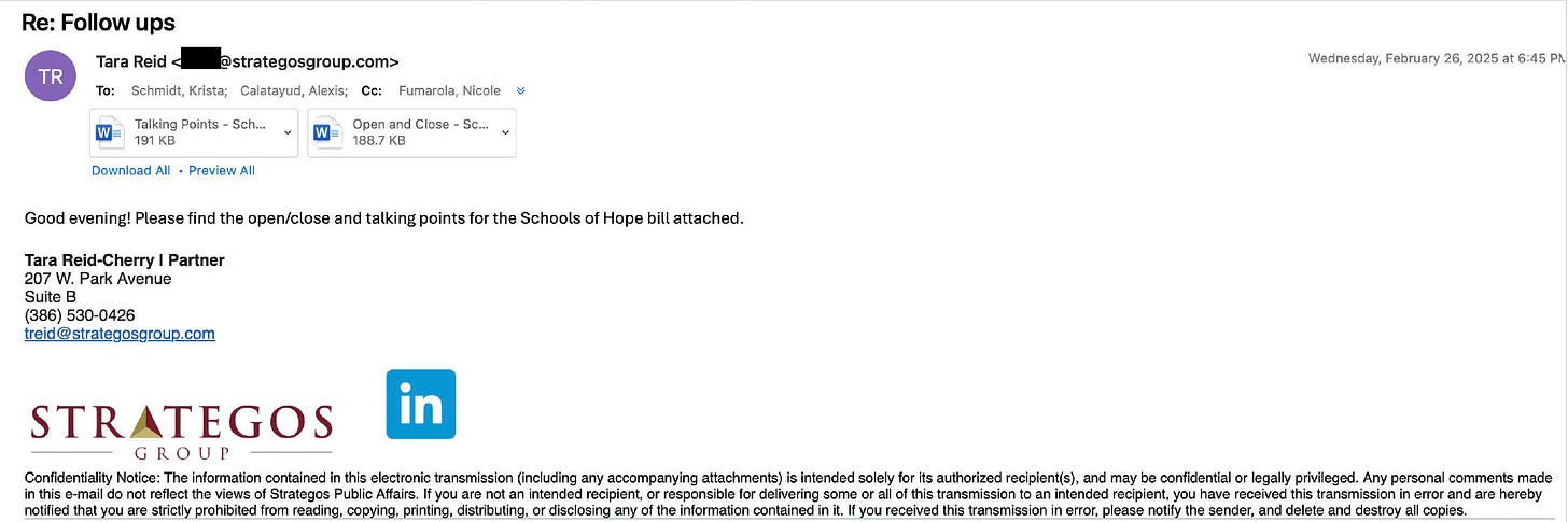 The records show, for instance, that they worked on the bill with Rep. Jennifer Canady (R-Lakeland), a future speaker of the state House who currently leads the chamber’s top education committee. They also arranged meetings to discuss their proposal with Senate President Ben Albritton (R-Wauchula) and some of his senior aides.