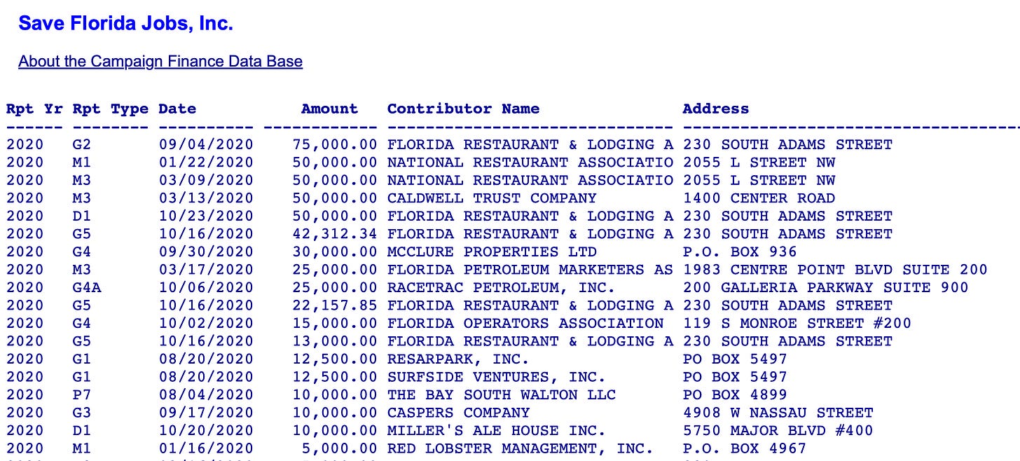 That campaign has been led by front groups like Associated Industries of Florida, the Florida Chamber of Commerce, the Florida Retail Federation, and the Florida Restaurant & Lodging Association — organizations that exist to push unpopular policies while protecting the brands of the corporations that fund them from any public backlash. Those lobbying groups and their members collectively spend millions of dollars a year on contributions to members of the Florida Legislature and statewide elected officials like the governor.