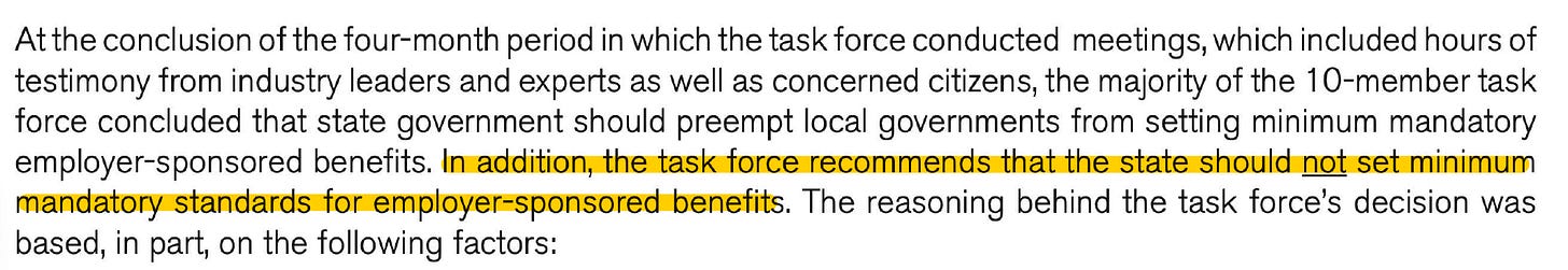 In response to criticism from workers and others, lawmakers inserted a provision into HB 655 that created something called the “Employee Sponsored-Benefits Task Force.” This new task force was charged with studying employee benefits in Florida and recommending whether Scott and the Legislature should set some statewide standard guaranteeing a basic level of benefits for all Florida workers.