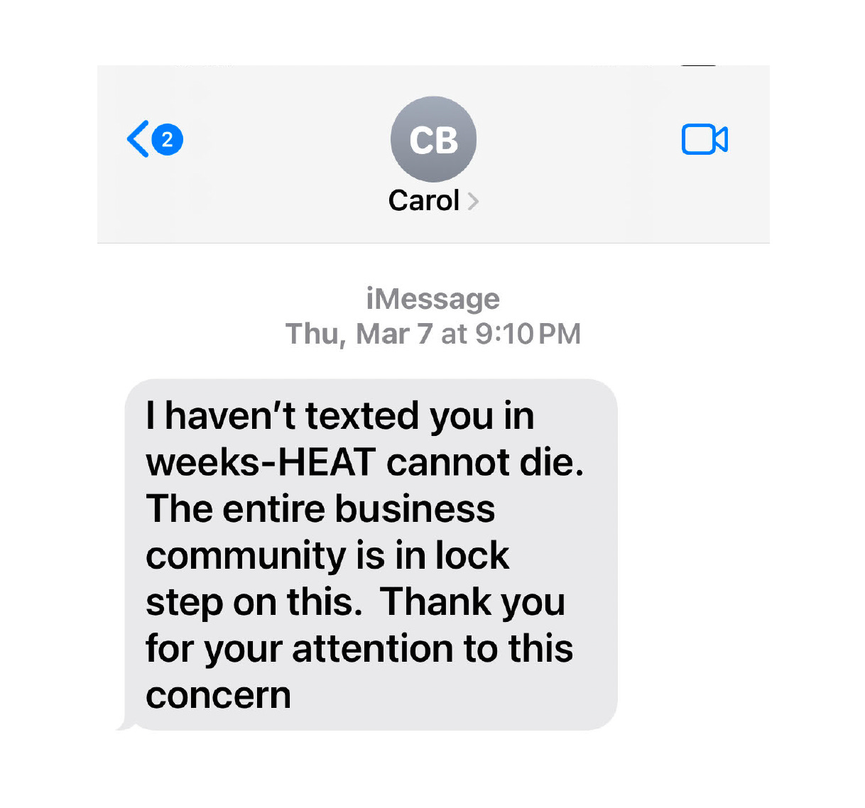 “I haven’t text you in weeks — HEAT cannot die,” a lobbyist for Associated Builders and Contractors texted to the chief of staff to House Speaker Paul Renner after 9 p.m. on the night before session ended, when it was still not clear whether HB 433 would pass. “The entire businesses community is in lock step on this.”