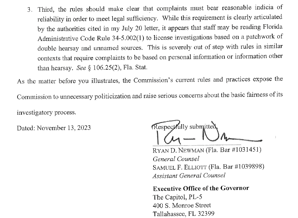 It also happens to mirror one of the “reforms” that Newman, DeSantis’ general counsel, had urged the commission to adopt.