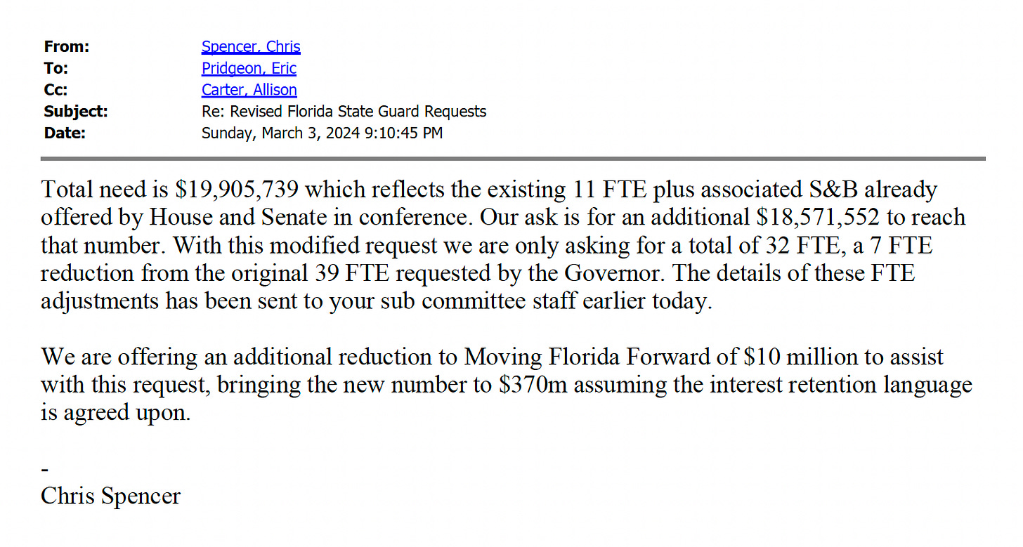 Emails offer a glimpse at the backroom horse-trading that goes into Florida's state budget — and the lengths Gov. Ron DeSantis will go to fund his new military force.
