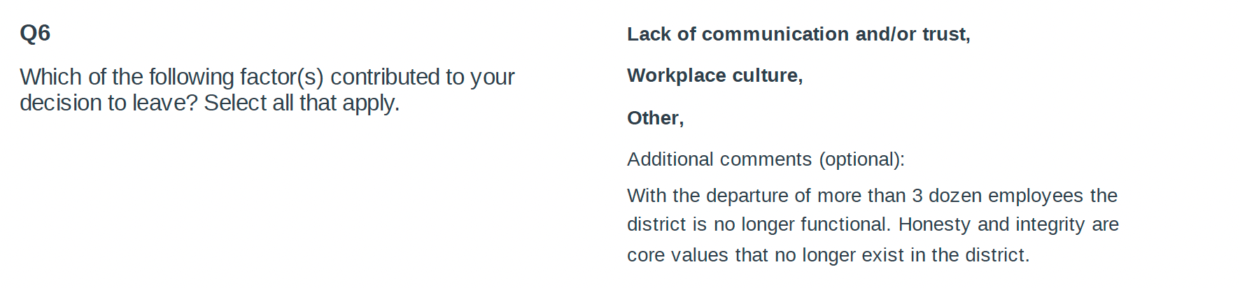 “With the departure of more than 3 dozen employees, the district is no longer functional,” the department director who called the district’s new leadership “unqualified and incompetent” wrote in his exit survey.