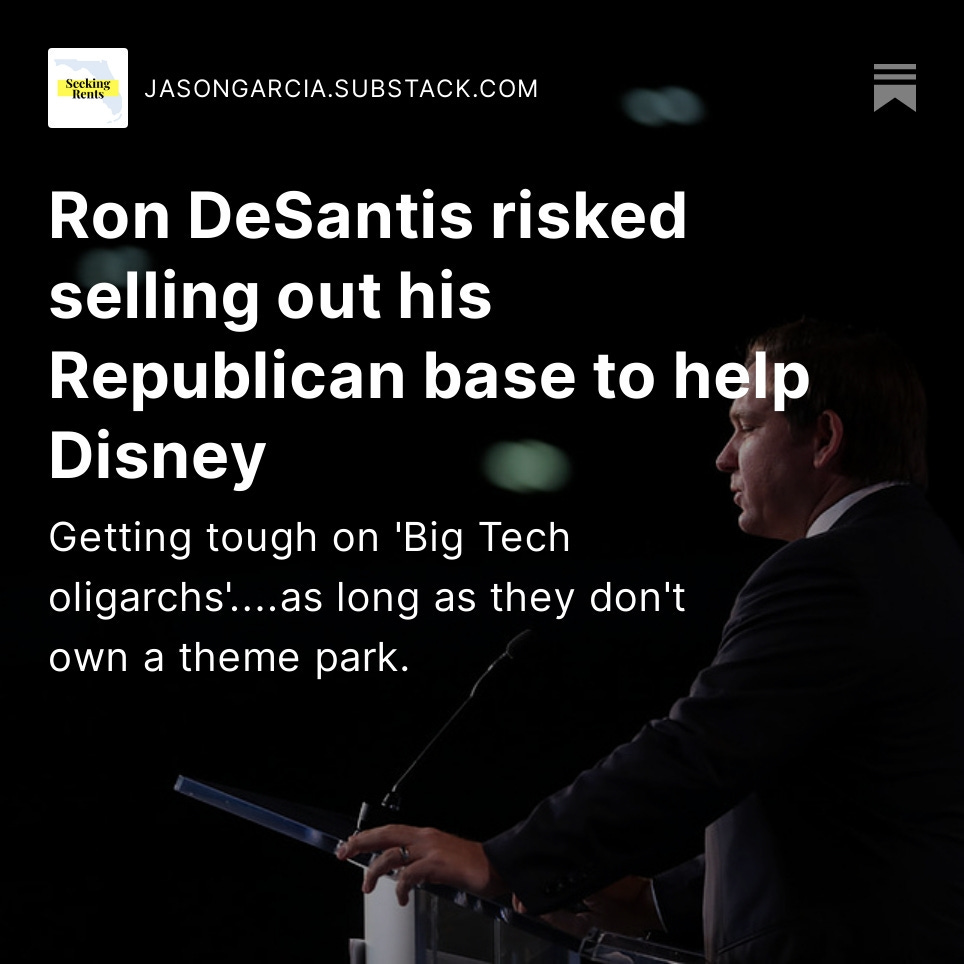 This is Seeking Rents, a newsletter and podcast devoted to producing original journalism — and lifting up the journalism of others — that examines the many ways that businesses influence public policy across Florida, written by Jason Garcia. Seeking Rents is free to all. But please consider a voluntary paid subscription, if you can afford one, to help support our work.