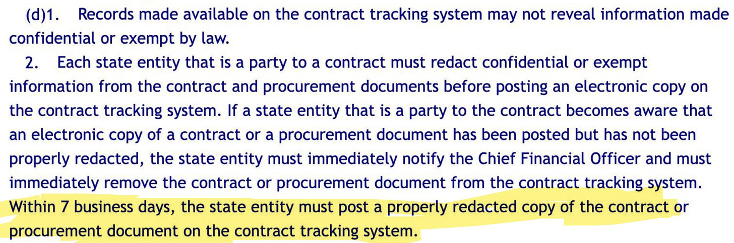If state officials want to redact information from these records, they must then post “a properly redacted copy of the contract or procurement document."