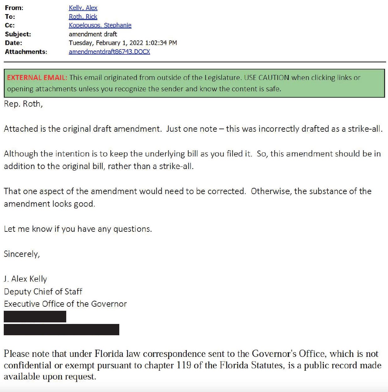 In that email, Kelly sent the Vestcor amendment to Rep. Rick Roth, a Republican from West Palm Beach who was the House sponsor of the underlying affordable-housing legislation that Vestcor was trying to hijack.