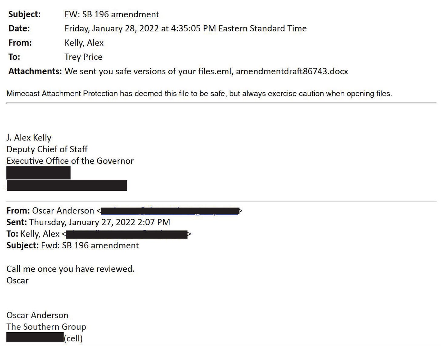 “Call me once you have reviewed,” the Vesctor lobbyist, Oscar Anderson, wrote to Kelly.